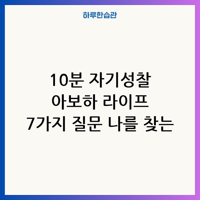 이 글에서는 여러분이 10분 자기성찰을 통해 아보하 라이프에 한 걸음 더 다가갈 수 있도록 7가지 핵심 질문을 제시하고, 각 질문에 대한 깊이 있는 해설과 실천 방안을 함께 제시합니다. 자, 지금부터 10분 자기성찰의 여정을 시작해 볼까요?